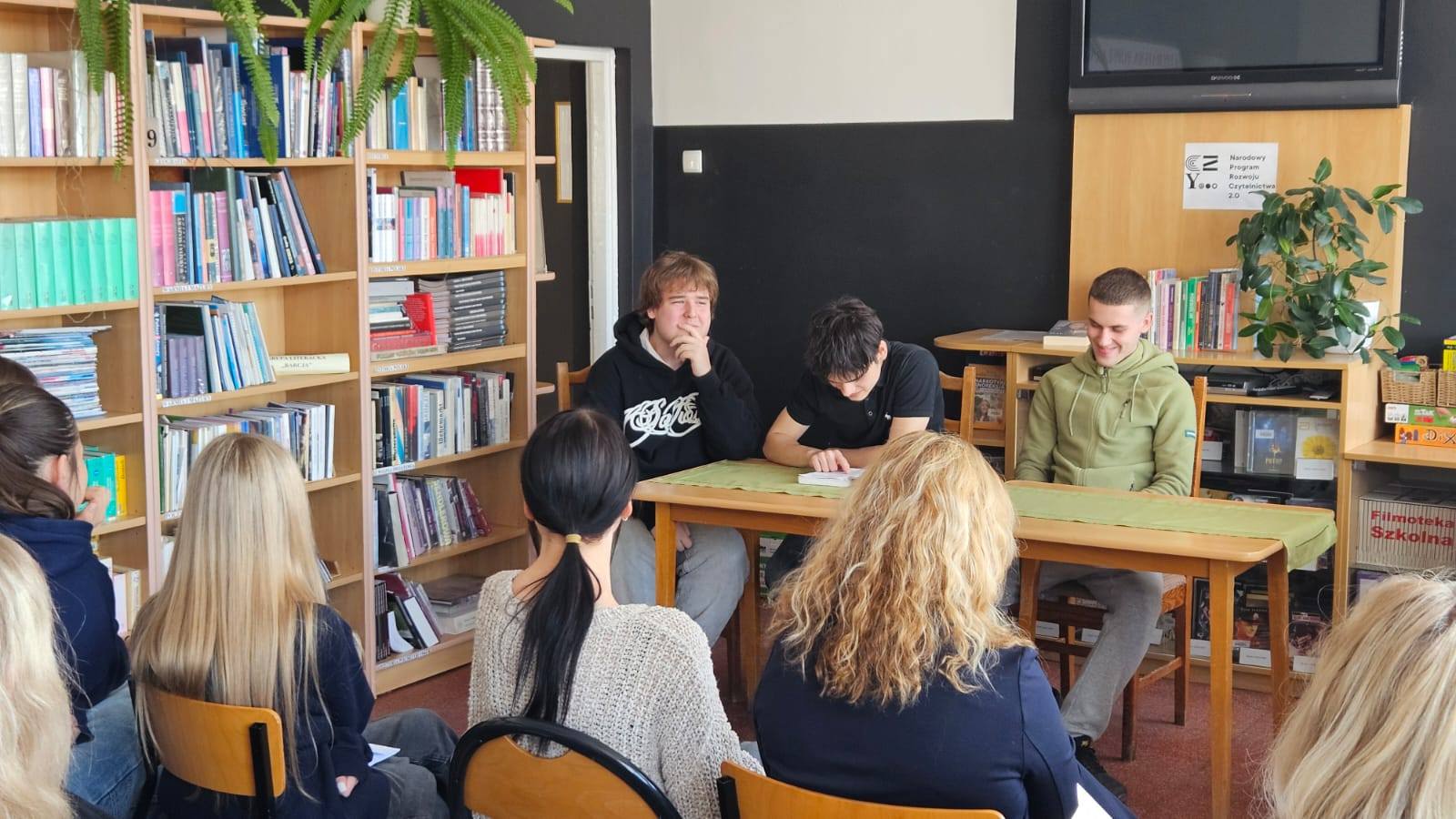 Dnia 13 kwietnia 2026 r. w Bibliotece szkolnej 6 drużyn uczniowskich udowodniło, że książka może być lepszą opcją niż scrollowanie mediów społecznościowych. Konkurs „Book to book zamiast Facebook” dał okazję do tego, by młodzież przedstawiła wybrane przez siebie utwory z wielu gatunków literackich, bowiem „świat książek jest nieograniczony”. Ich interpretacja stała się z pewnością jednym z czynników zachęcających do przeczytania konkretnych pozycji.