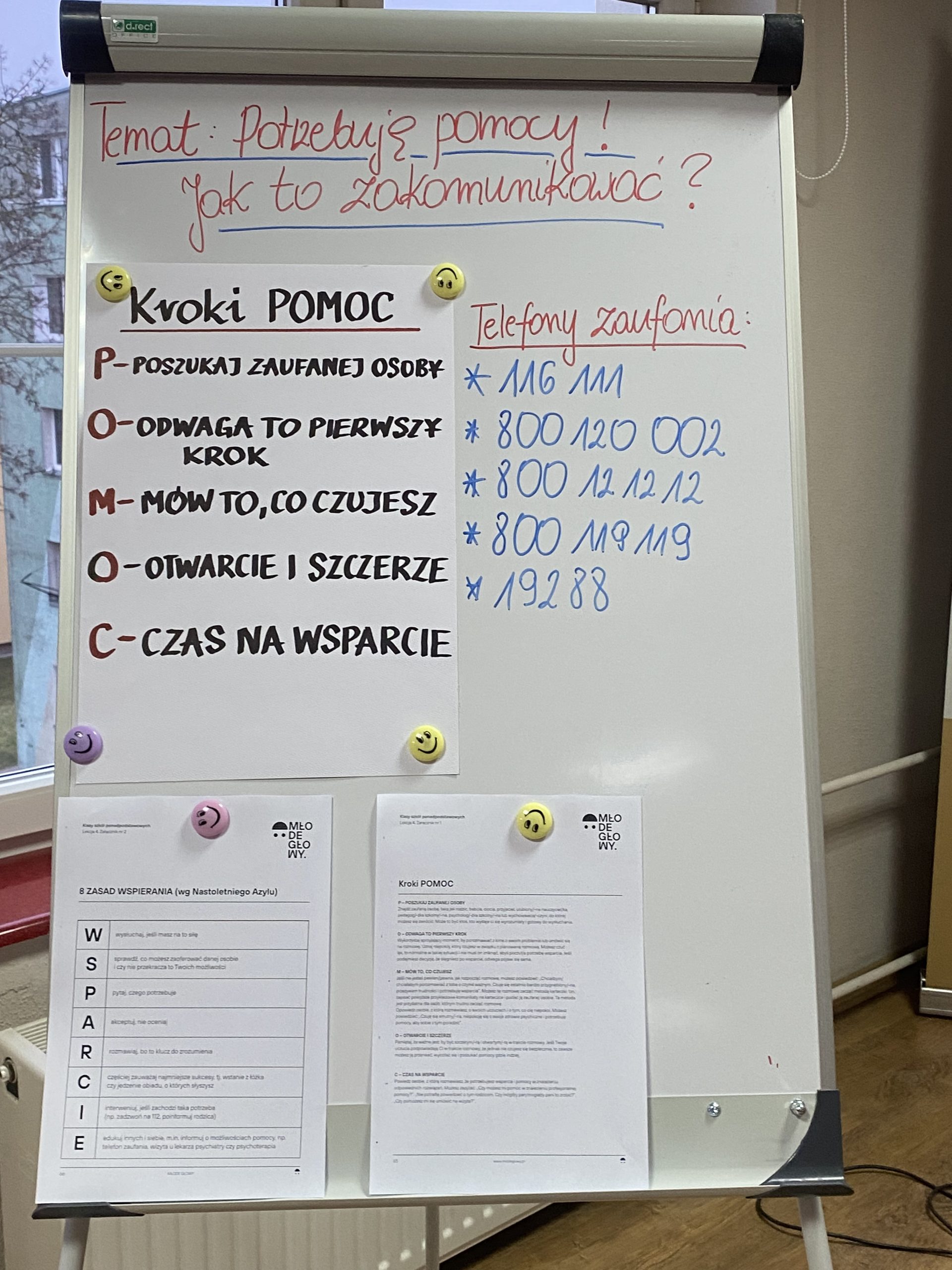 Treści poszczególnych zajęć miały na celu promowanie otwartej komunikacji na temat zdrowia psychicznego, w tym wzmocnienia poczucia sprawczości wśród młodzieży oraz praktyczne kształcenie umiejętności udzielania pierwszej pomocy psychologicznej. Zajęcia realizowano w formie warsztatowej z wykorzystaniem metod aktywnych: praca w kręgu, małych grupach, parach, drama, burza mózgów, gry i zabawy grupowe, wykład, relaksacja, rundki oraz dyskusje. Poruszane zagadnienia wzmacniały kompetencje młodzieży w zakresie rozpoznawania emocji, nazywania potrzeb, stawiania granic czy komunikowania potrzeby wsparcia. Młodzież chętnie i odważnie rozmawiała na temat przeżywanych emocji, potrzeb, dzieliła się własnymi doświadczeniami dotyczącymi zdrowia psychicznego.