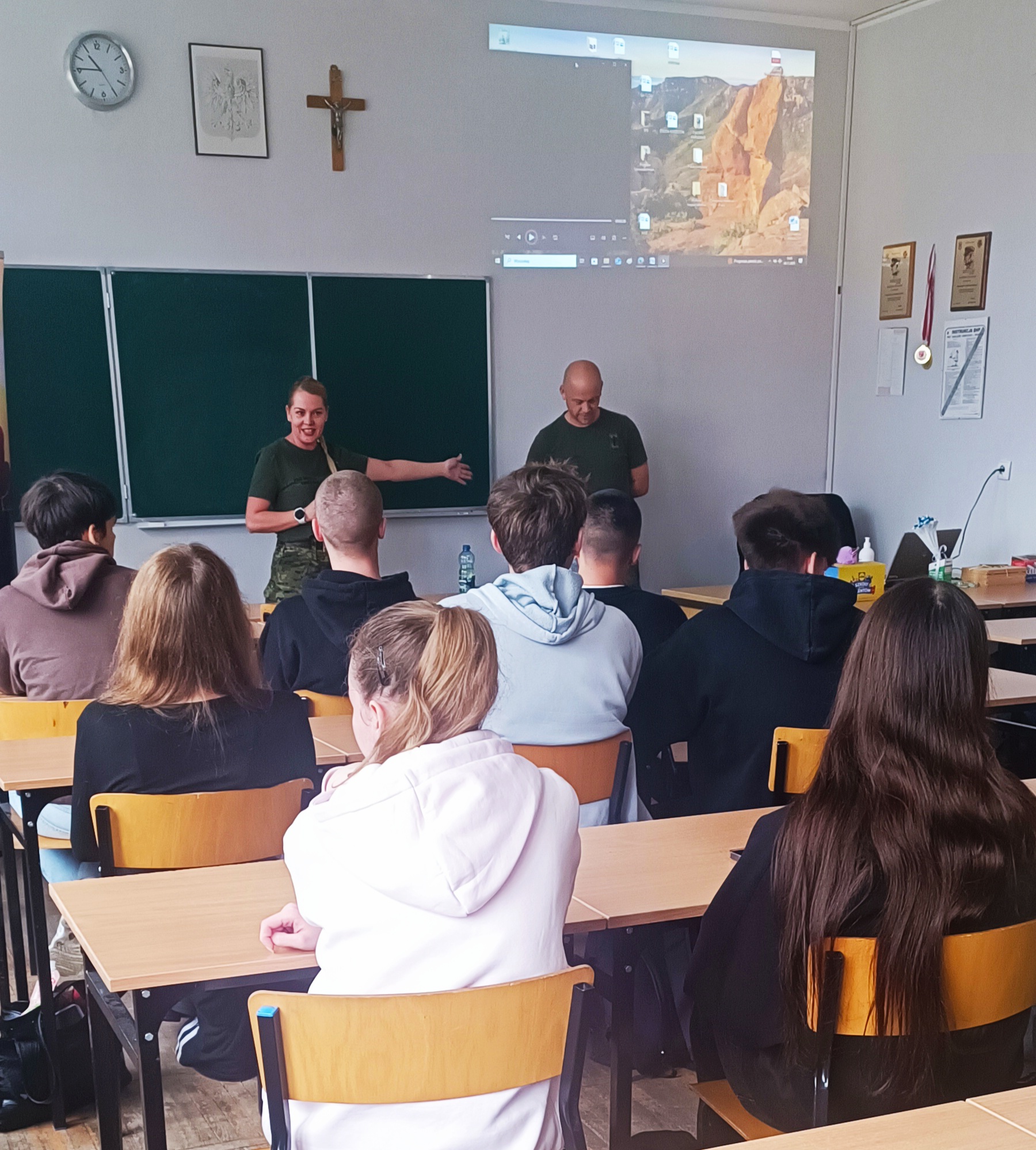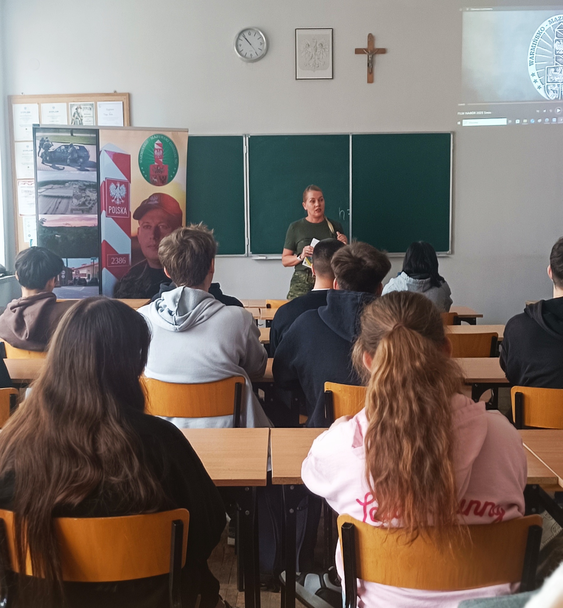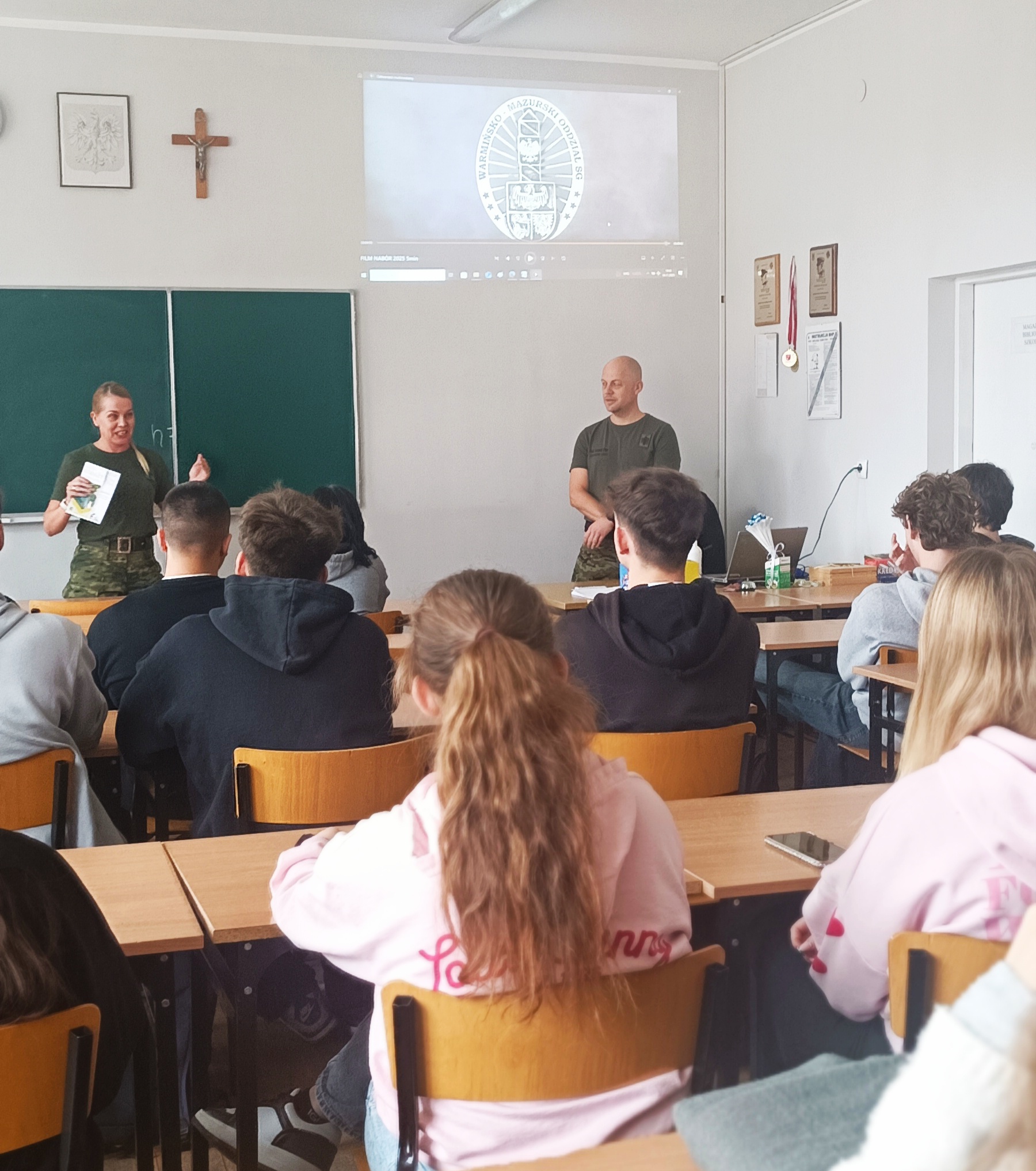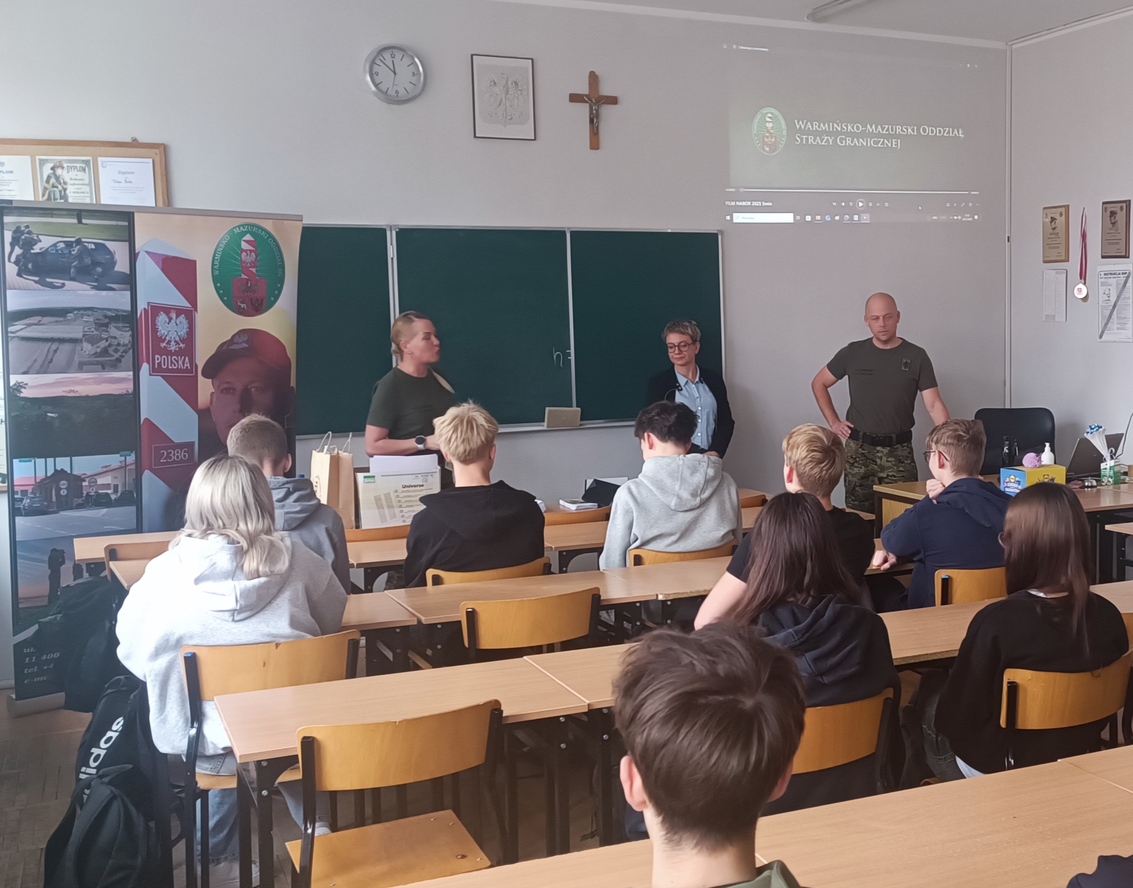 Funkcjonariusze Straży Granicznej z Bezled przedstawili uczniom możliwości wyboru dalszej ścieżki edukacyjno – zawodowej w kontekście pracy w szeregach SG. Czy wstąpić do Straży od razu, a może zacząć od studiów w Wyższej Szkole Straży Granicznej w Koszalinie? Bo takie opcje mają do wybory osoby chcące wiązać swoją karierę zawodową ze Strażą Graniczną. St. chor. szt. SG Magdalena Górecka i st. chor. szt. SG Marcin Grobelny z placówki w Bezledach przedstawili zasady naboru do służby i na studia. Opowiedzieli też o tym, jak wygląda praca pograniczników na co dzień. Młodzież natomiast miała okazję wykazać się wiedzą z zakresu ochrony granicy państwa podczas quizu z nagrodami. Wszyscy zainteresowani otrzymali informatory z zasadami naboru do służby i korzyściami wynikającymi z pracy jako strażnik graniczny. Kontynuacją współpracy będzie wizyta uczniów na przejściu granicznym w Bezledach.