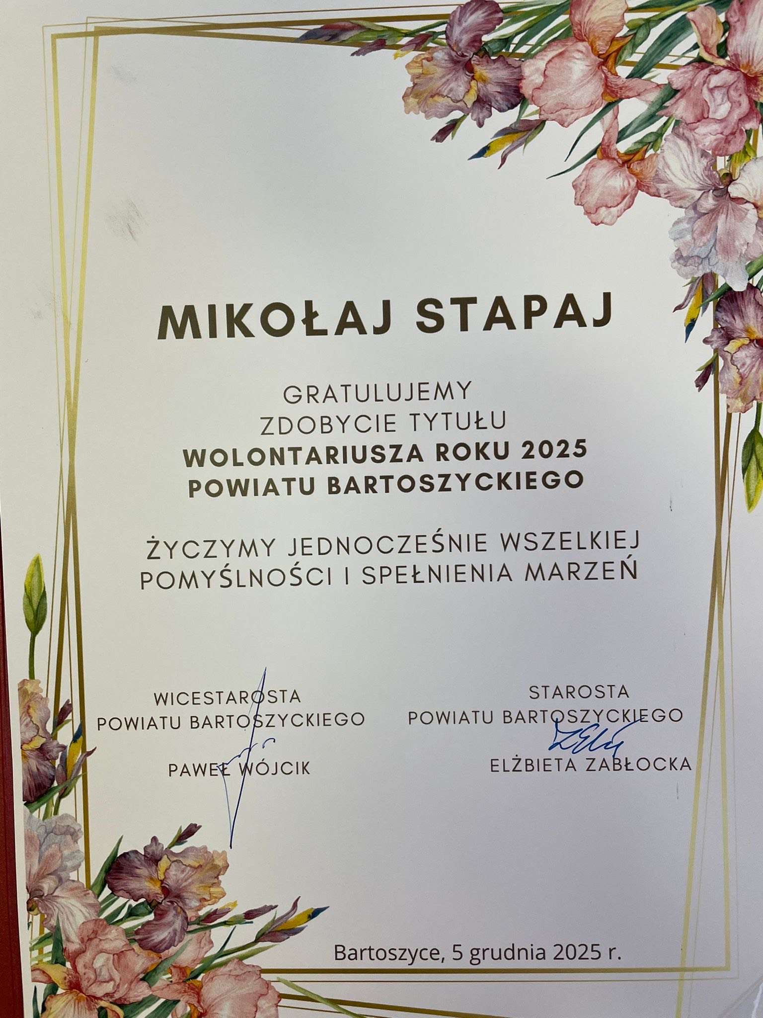 WOLONTARIUSZ ROKU 2025 POWIATU BARTOSZYCKIEGO