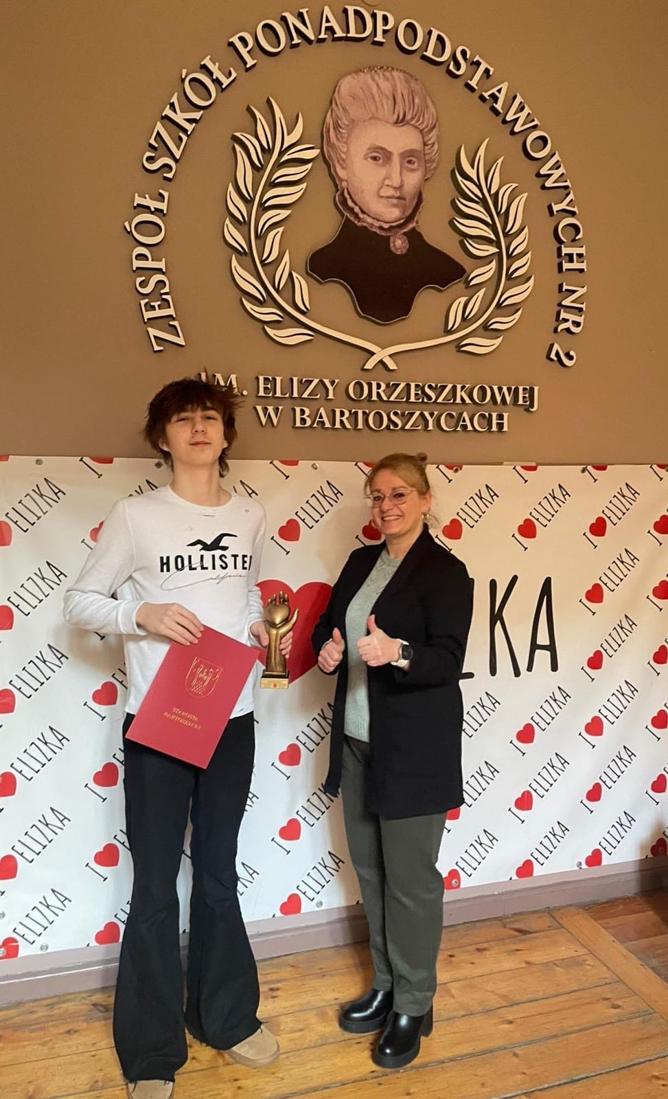 Z ogromną dumą informujemy, iż uczeń Technikum Ekonomicznego w Zespole Szkół Ponadpodstawowych nr 2 im. Elizy Orzeszkowej w Bartoszycach Mikołaj Stapaj został uhonorowany tytułem WOLONTARIUSZ ROKU 2025 POWIATU BARTOSZYCKIEGO. To wyjątkowe wyróżnienie przyznawane jest osobom, które w szczególny sposób angażują się w pomoc innym i aktywnie działają na rzecz społeczności lokalnej. Nasz uczeń aktywnie uczestniczy w działaniach Szkolnego Klubu Wolontariatu oraz wyróżnia się ogromnym zaangażowaniem, empatią i gotowością do działania. Brał udział w licznych akcjach charytatywnych, zbiórkach żywności, kiermaszach oraz innych wydarzeniach. Wielokrotnie inicjował własne pomysły na pomoc, dając przykład rówieśnikom i pokazując, że dobro można czynić na wiele sposobów. Tytuł Wolontariusza Roku 2025 to nie tylko docenienie jego dotychczasowej pracy, ale także inspiracja dla całej społeczności szkolnej. Pokazuje, że pasja, chęć niesienia pomocy i otwarte serce mogą zmieniać świat na lepsze. Dyrektor ZSP nr 2 Pani Monika Szpura – Kazimierczuk złożyła wolontariuszowi serdeczne gratulacje i życzyła dalszych sukcesów w pracy na rzecz innych.