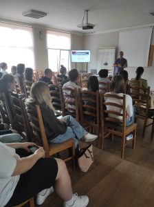 Czas nadchodzących wakacji to okres częstych wyjazdów młodzieży. Prelegenci przypomnieli młodzieży, że ofiarą może stać się każdy bez względu na wiek, płeć czy pochodzenie, a środkiem do osiągnięcia przez sprawców celu jest między innymi stosowanie przemocy zarówno psychicznej, jak i fizycznej, gróźb, a także różnych form zastraszania. Omówili główne aspekty związane z handlem tzw. żywym towarem. Przedstawili między innymi metody pozyskiwania osób, formy handlu, skalę tego zjawiska oraz metody niwelowania i unikania zagrożeń.